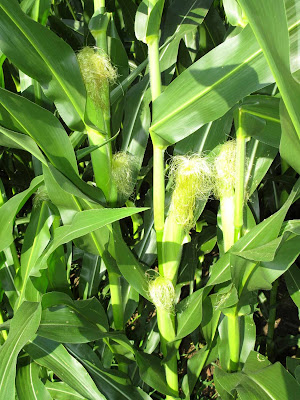 By August 7, the ears appeared to be full size and what kernels were visible appeared to be fully formed. Growing degree days totaled about 10% more than the historical average, but evidence of stalk drying was practically non-existent. Rainfall was minimal, but humidity remained high.
